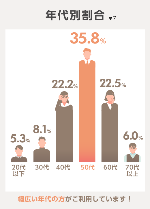 *7:2025年8月末時点の契約者の年代別割合(小数点以下第二位を四捨五入)。