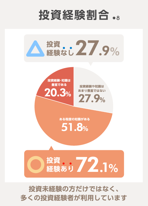 *8:2025年8月末時点。2020年4月1日以降のコンサルティング内で行った質問「あなたの投資経験・知識を教えてください」に対する回答の割合(小数点以下第二位を四捨五入)。
