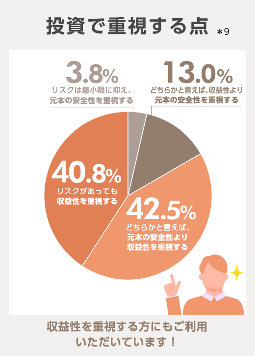 *9:2025年8月末時点。2020年4月1日以降のコンサルティング内で行った質問「今回の投資では、どのような点を重視しますか?」に対する回答の割合(小数点以下第二位を四捨五入)。