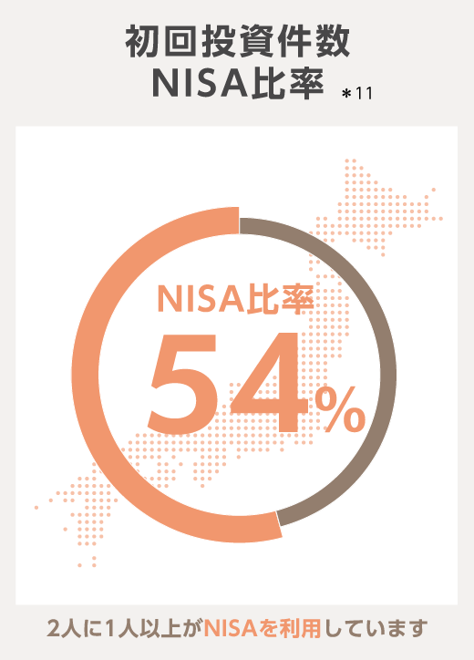 *11:2025年8月末時点。2024年3月26日以降の新規契約の当初投資でNISA口座を使用した件数の比率(小数点以下を四捨五入)。